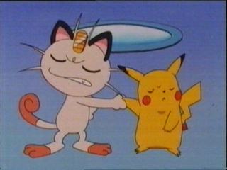 | Meowth and Pikachu argue about who gets to go on top. | ![]() |